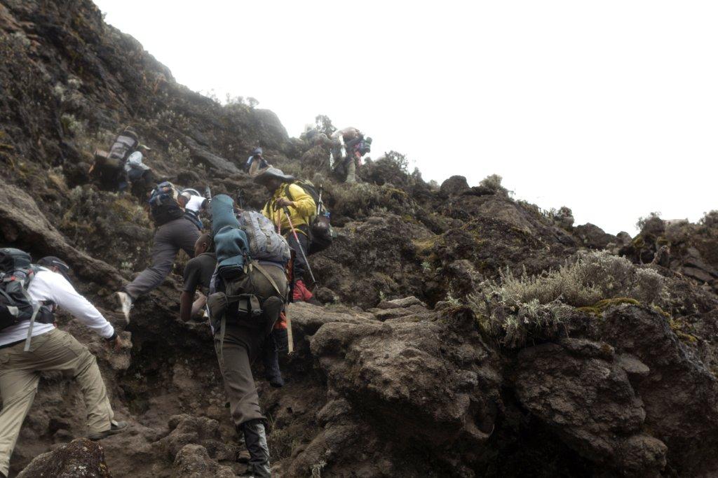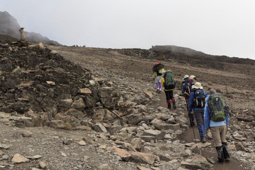 Today the group ascended the great Baranco wall, and then descended over gently sloped hills and valleys to the spectacular Karanga camp (3900m).