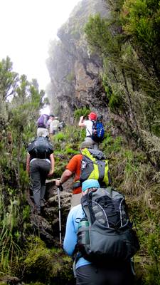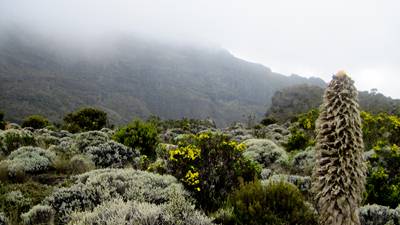 The walk today becomes steeper with fantastic views as they trek along narrow valley ridges and over rocky sections towards the Moorland zone. Dinner and overnight at Baranco camp.
