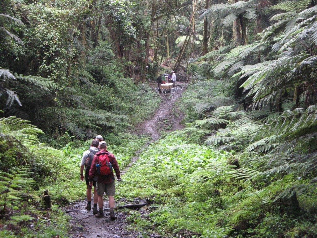 After breakfast they will be driven to the Umbwe Gate at 1800m, passing through villages with coffee and banana plantations. On arrival at the Parks Gate they will meet the guides and porters and sign the register. The route initially follows a muddy, forestry track winding up through the natural rain forest. It then narrows and steepens to climb the ridge between the Lonzo and Umbwe rivers, with huge trees surrounding the climbers and glimpses of deep valley gorges. Umbwe camp is perched between huge trees and thick undergrowth at 3000m.