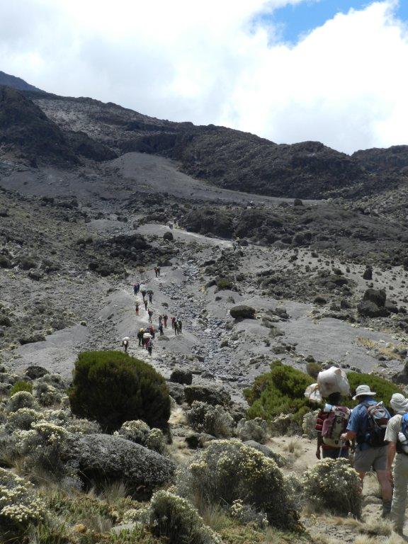 After spending a night at the Great Barranco Wall (an imposing sight at first), the group will make their way up the wall, which in the end turns out easier than anticipated. The route then heads down through the Karanga Valley over intervening ridges and valleys. Dinner and overnight at the spectacular Karanga camp.