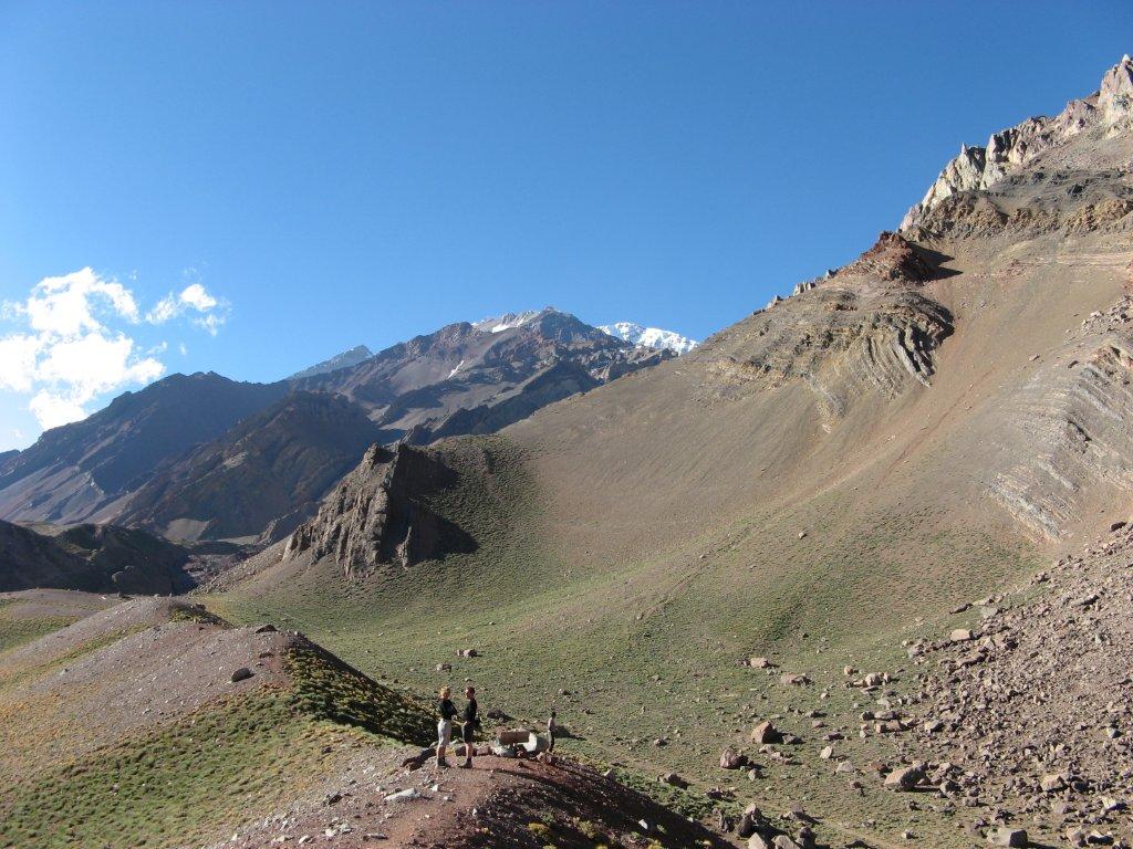 The group will have breakfast at the Penitentes hostel and then take a short drive to the Aconcagua Park entrance. Here, the permits are checked by the park rangers and then the trek begins. It will take them about 4 hours to reach camp Confluencia. Mules will be transporting most of their heavy gear, while they carry a light backpack. Lunch, dinner and overnight at Confluencia. Tent accommodation from here onwards.