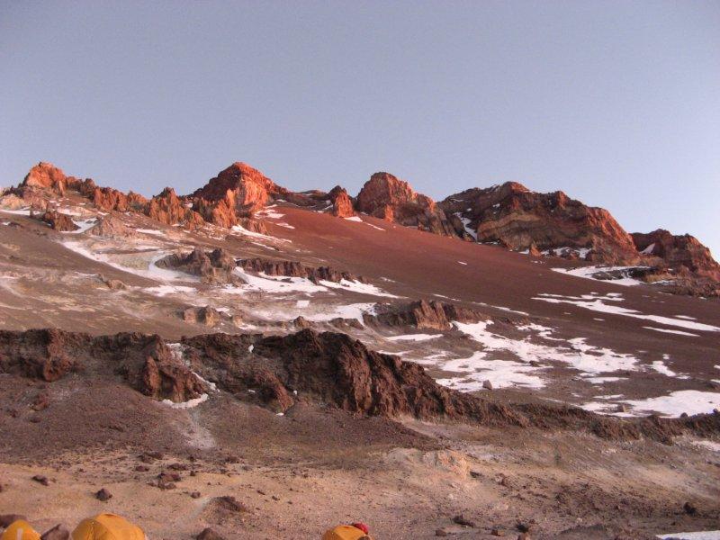 The first milestone tomorrow will be Camp Independencia at 6300m. After that, they will encounter the infamous Canaleta at 6500m. The Canaleta is a steep section from 6500m to 6700m full of rock and sand which can be difficult to cross. Once they are through the Canaleta they are only 200 meters from the summit.