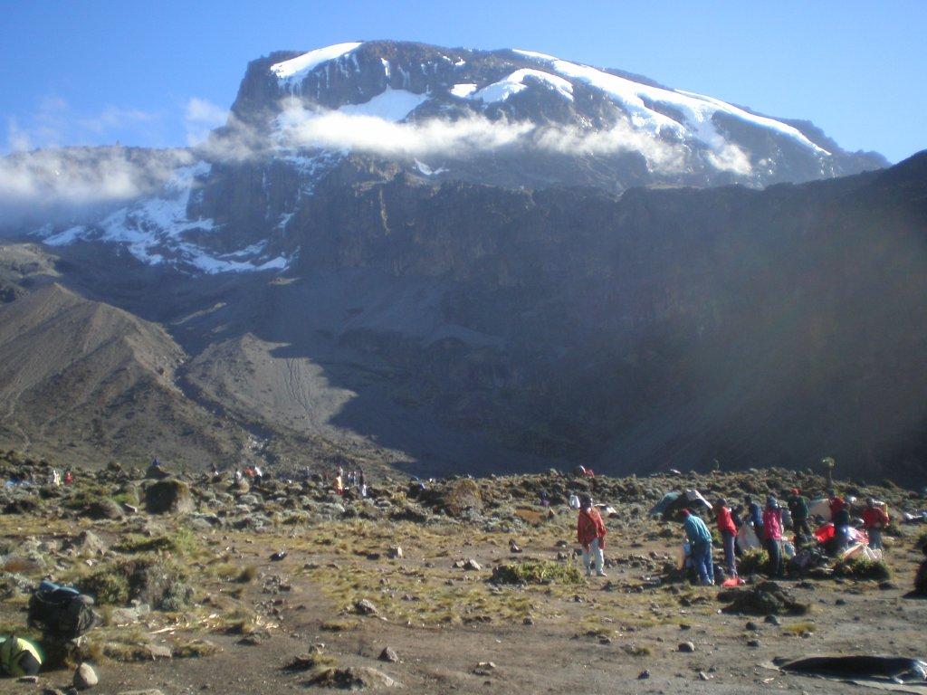 Yesterday the walk got steeper but very scenic, along narrow valley ridges and over rocky sections towards the Moorland zone. Dinner last night at Baranco camp (3950m). Today the group will ascend the great Baranco wall and then descend to Karanga valley, walk over gently sloped hills and through valleys, up to 4100m for a hot lunch. Dinner and overnight at the spectacular Karanga camp.