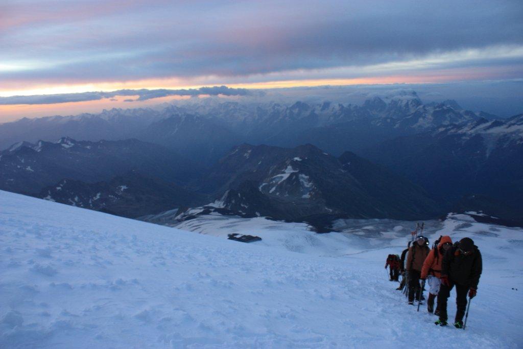 The team are all safely back at the Povorot hotel in Terskol. Many thanks to Dirk for organising the snow plough which got everyone off the mountain at speed, after a successful summit in trying conditions.
