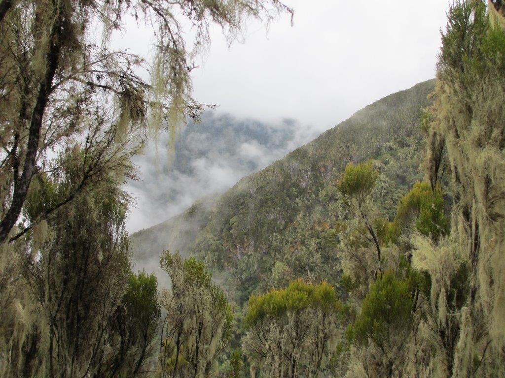 Shortly after leaving the camp, the forest starts thinning and is replaced by rockier terrain, sparser undergrowth and scraggly, moss-covered trees. The path continues along a narrow ridge and as they gain higher altitude, they’ll catch glimpses of Kili. The path then flattens as they approach Barranco Valley. From the Umbwe ridge, the route descends slightly to Barranco camp (3950m). The camp is situated in the valley below the Breach and Great Barranco Wall which will be climbed tomorrow.