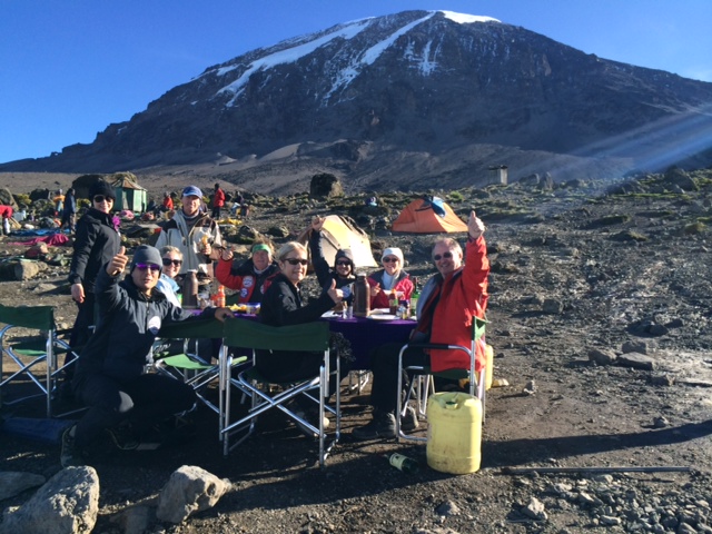 After a delicious breakfast of oats and pancakes under a clear summit dome, the team will now be on their way through the wild alpine desert to Barafu hut (4600m). Leaving camp, the path immediately begins to rise and does so most of the way to Barafu. The landscape becomes barren and desolate. Once in camp, they’ll enjoy a solid meal and Sean will brief everyone on the plan for the summit bid – leaving at about 11pm tonight. Everyone will try to sleep this afternoon.